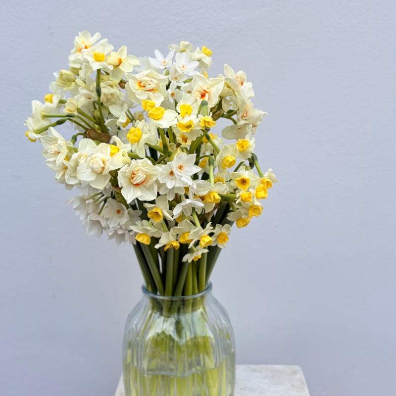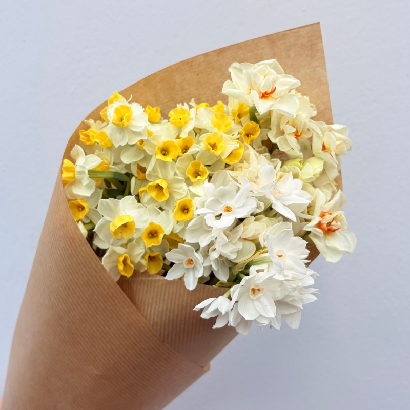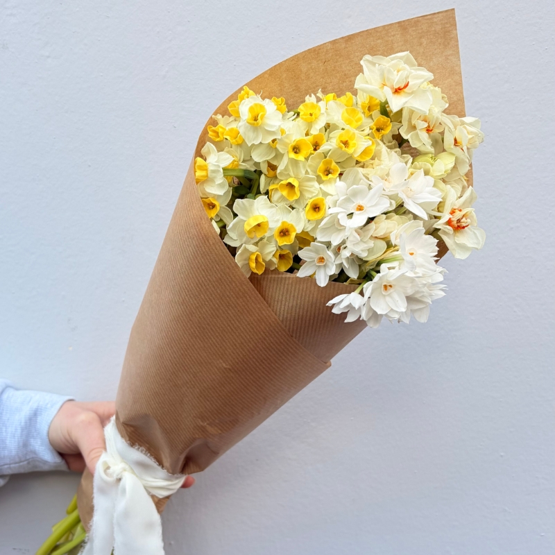 Celebrate the simple beauty of Spring with An Abundance of Daffodils, a wonderful, hand-tied bunch of a selection of fresh, vibrant Daffodils, wrapped in rustic kraft paper for an effortlessly elegant touch. Available in 20 stems and the option to add a vase, this bouquet is perfect for adding a pop of colour to your home or gifting to someone special.